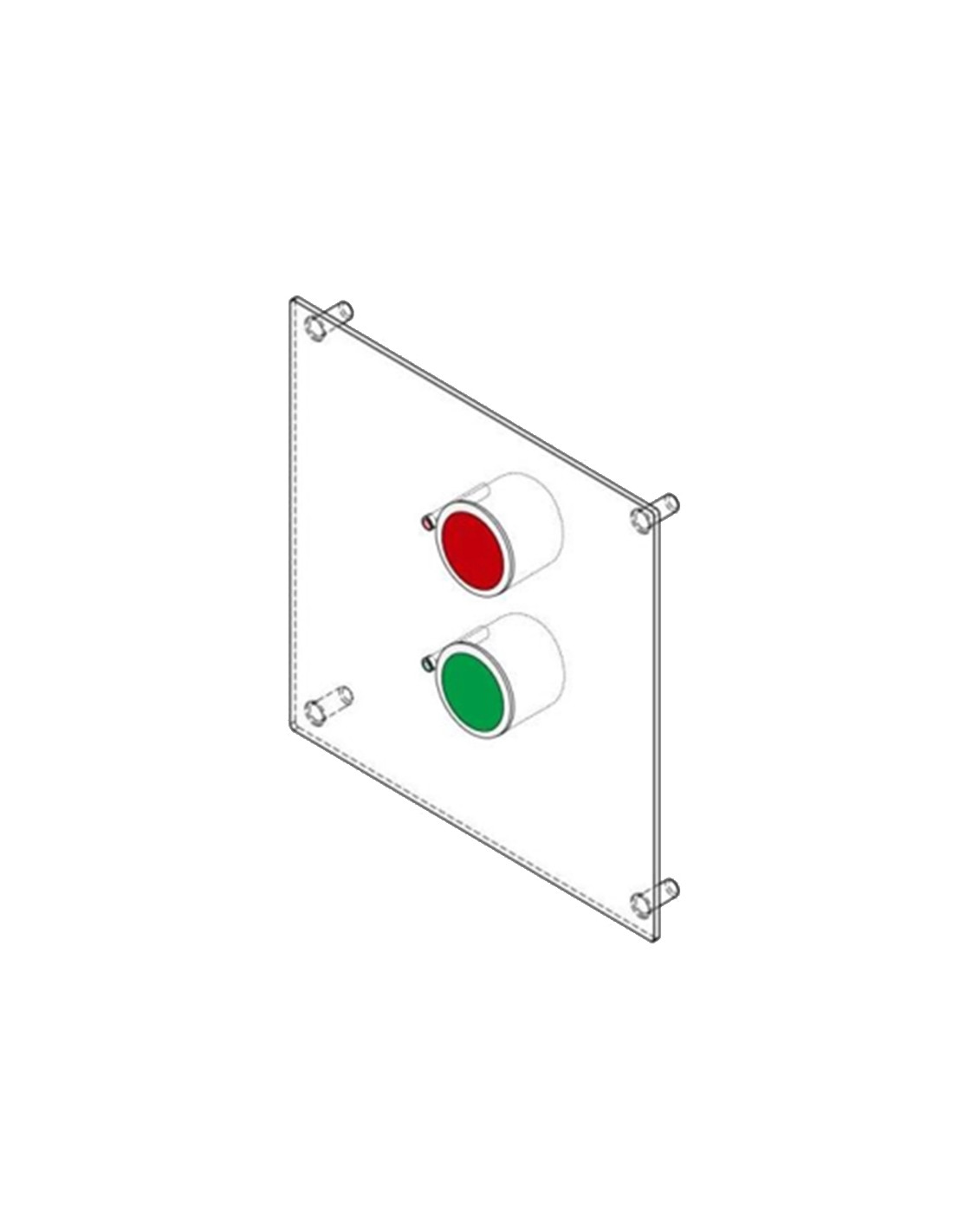 La BWGV-71000008 est la façade de module d’appel et présence du système AVS Ascom. Elle est conçue pour le Customizable Button Module NUDM3-HE et offre, sur un même emplacement, un bouton rouge d’appel et un bouton vert de présence, parfaitement alignés avec les touches et LED du module.