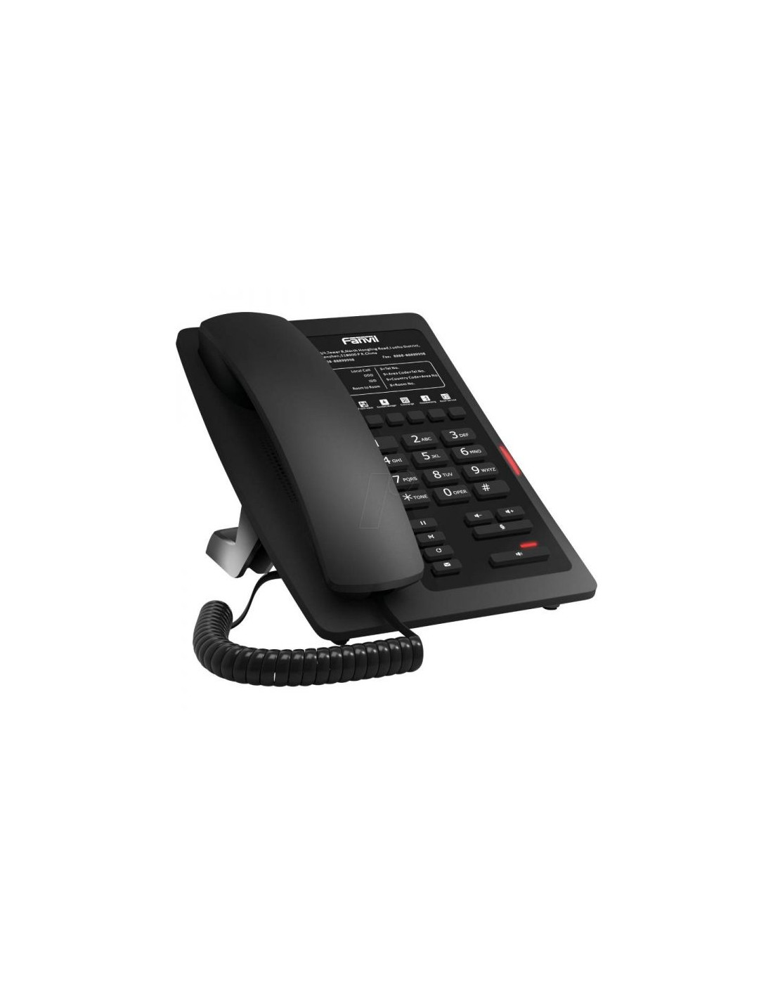 Le Fanvil H3W Wi‑Fi Noir est un téléphone IP conçu pour les environnements accueillant du public comme les hôtels, hôpitaux ou centres commerciaux. Il propose une connectivité sans fil via Wi‑Fi 2,4 GHz ou filaire avec deux ports RJ45, et l’alimentation via PoE rend l’installation simple et flexible. Compatible avec de nombreuses plateformes SIP, il offre une qualité audio HD grâce aux codecs G.722 et Opus. Facile à configurer et à gérer à distance, il intègre 6 touches programmables pour accéder rapidement aux fonctions ou contacts fréquents, tout en affichant un design épuré adapté à un usage intensif.